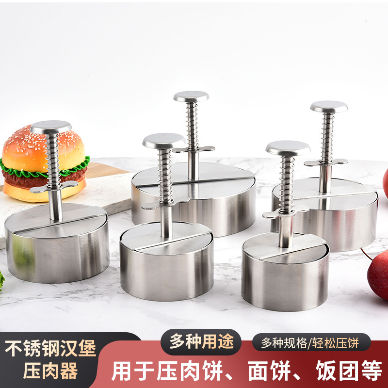 卸売りステンレスハンバーガー圧肉器手動円形押し式肉餅圧金型家庭用キッチンハンバーガー圧