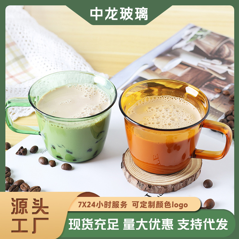 クリエイティブヨーロッパカラーガラス取っ手付きコーヒーカップ単層朝食カップ牛乳カップinsカラーグラス
