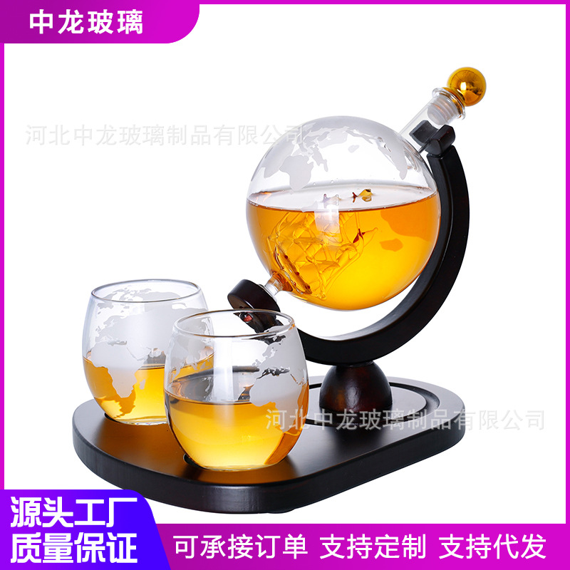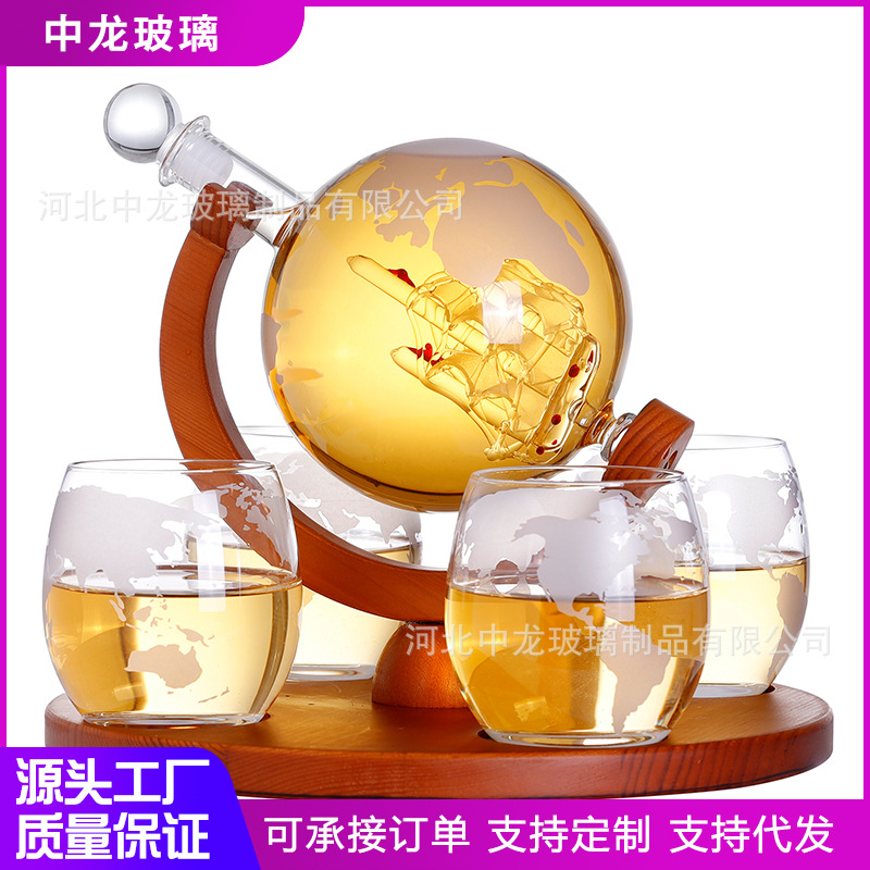 高ホウ素シリコンガラス地球儀地図カップデキャンタ木枠付き酒器セット