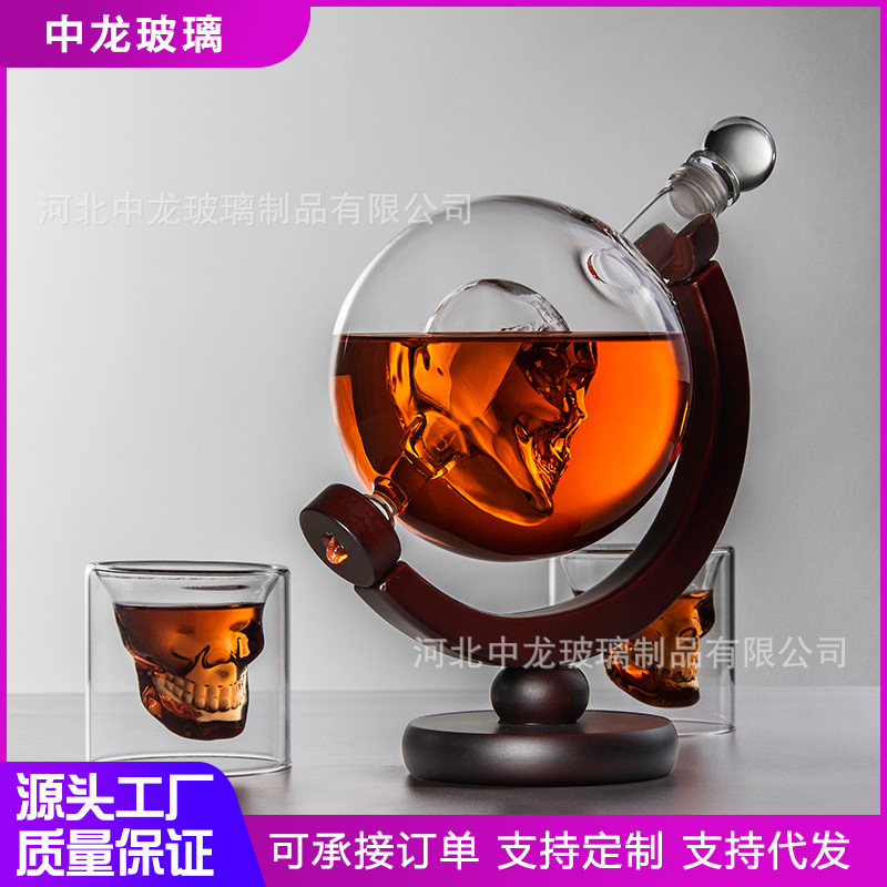 人気スカル地球儀デキャンタミッキー型木枠カップ付き酒瓶セットデキャンタセット