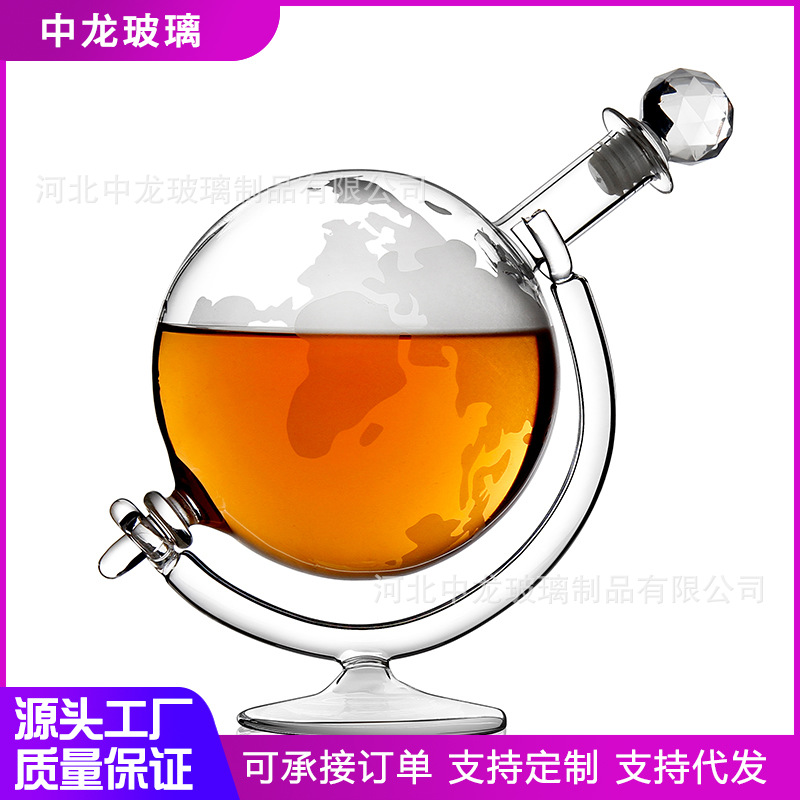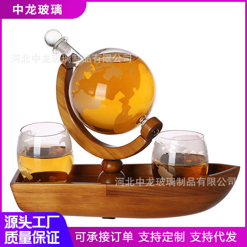 威士忌酒瓶盛酒器 椭圆木架地球型帆船玻璃酒瓶 伏特加玻璃酒具