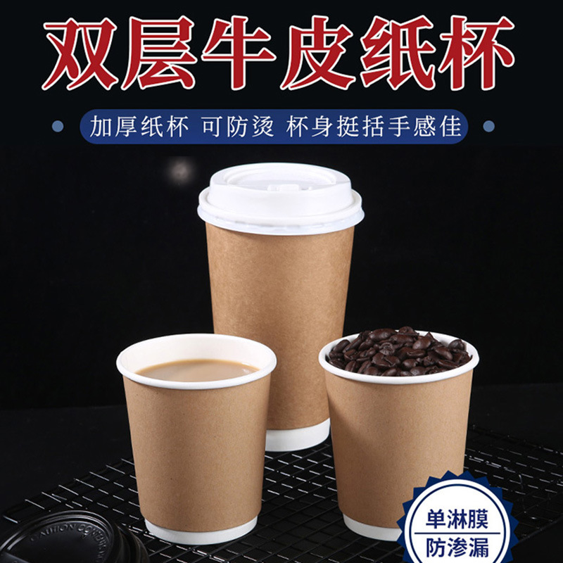 メーカー卸売使い捨てテイクアウトコーヒーカップクラフト紙中空カップミルクティーソイミルクカップ二層増粘