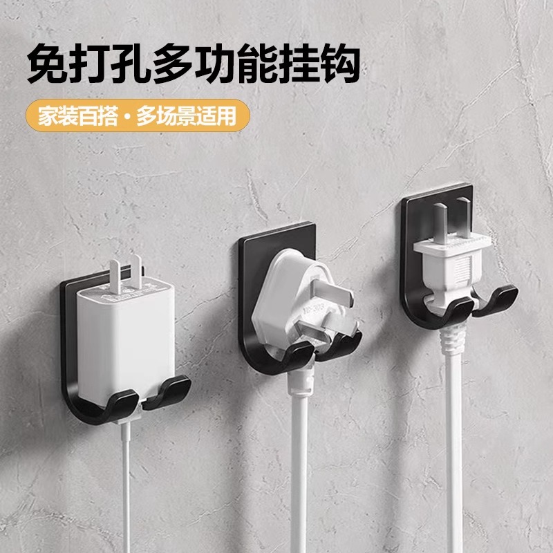 電源コードのプラグフックは穴を開けないで、強力な接着剤をフックします。
