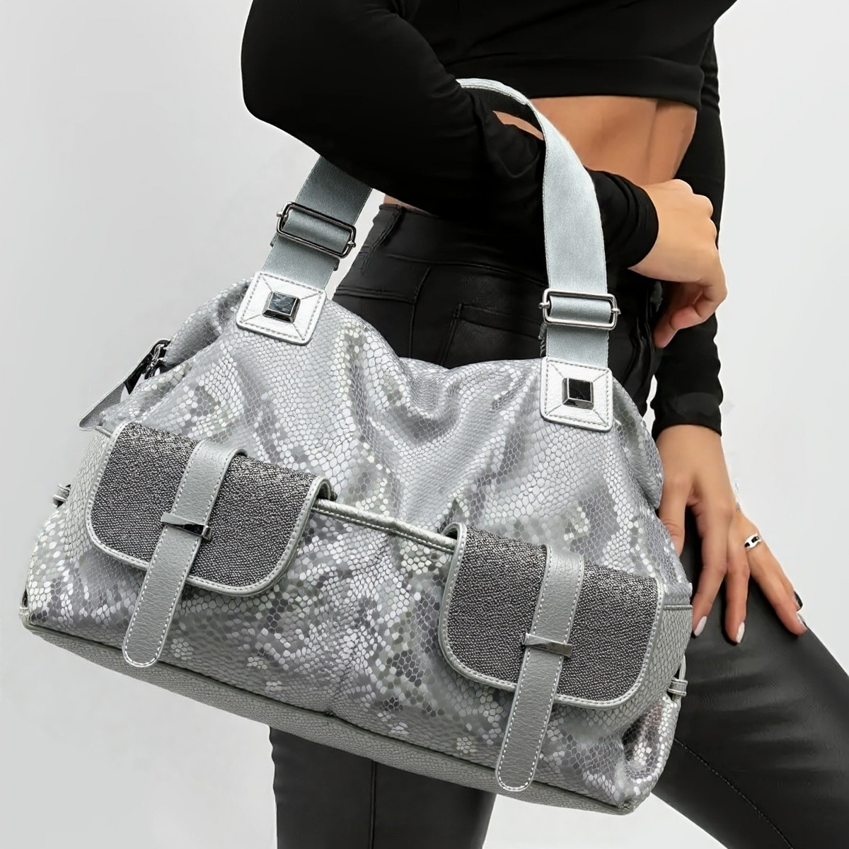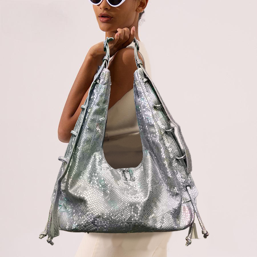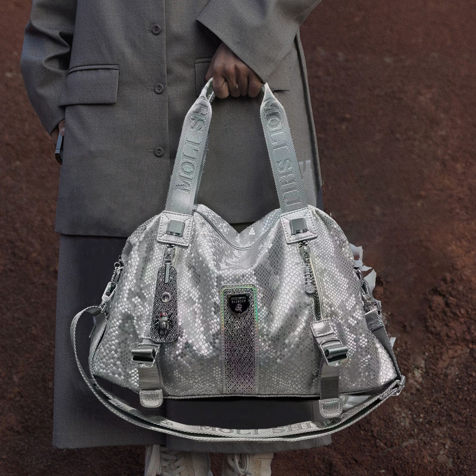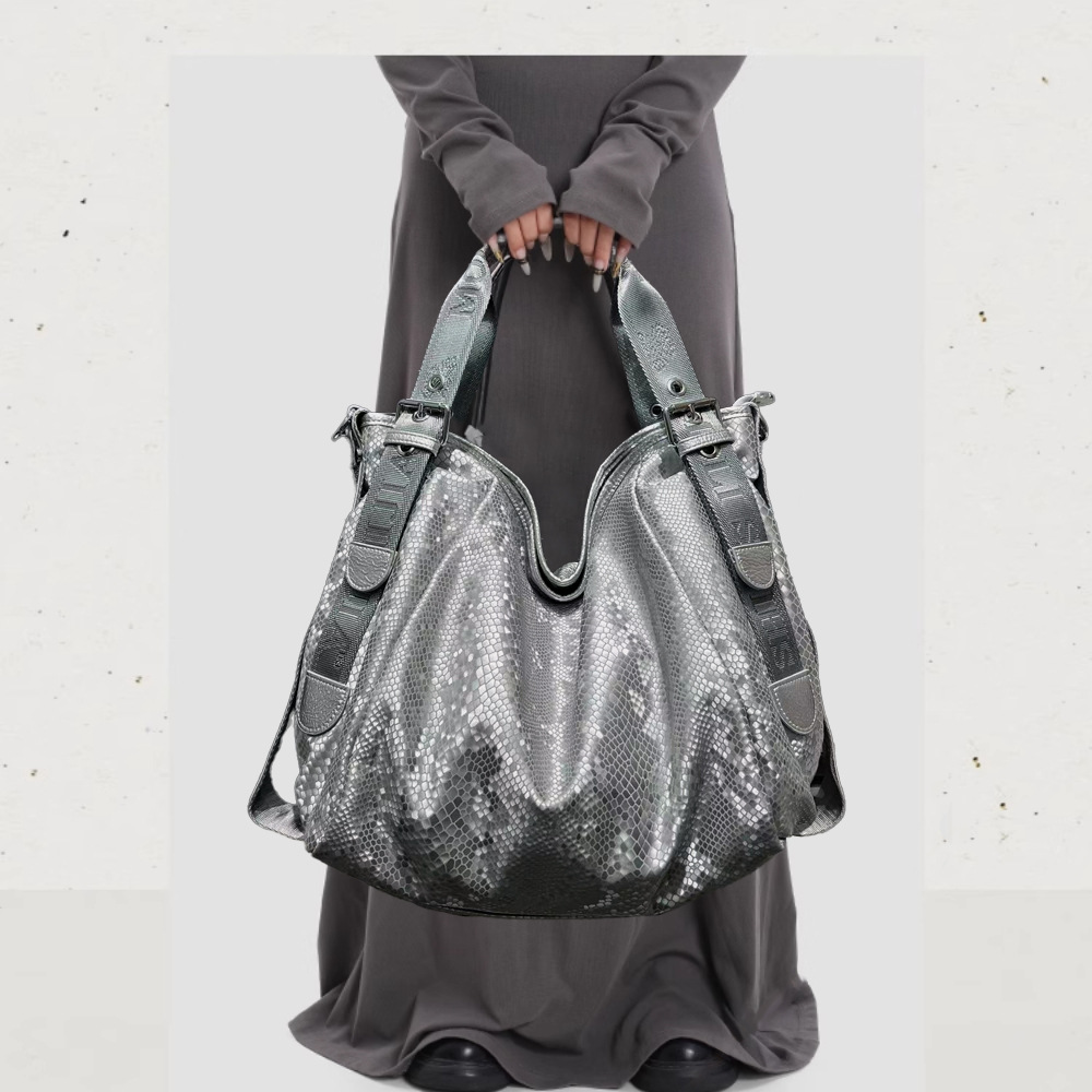 女性用ファッションスパンコールスネークトートバッグ、大容量マルチポケットエレガントショルダーバッグの国境を越えた供給