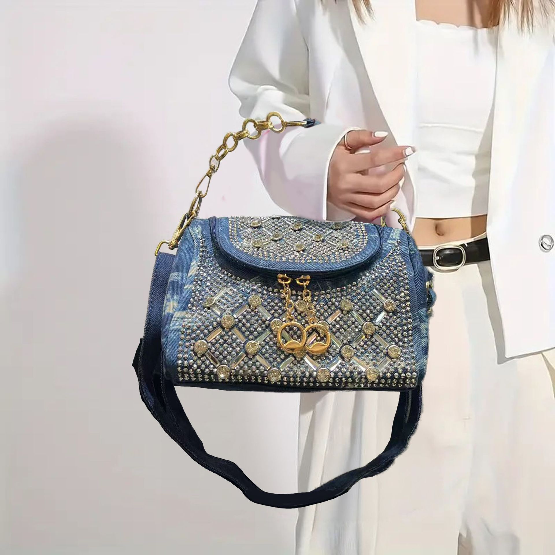 女性向けのクロスボーダー特別供給、ファッショナブルでエレガントなウォッシュデニムショルダーバッグ、気質のあるイブニングレディの光沢のあるハンドバッグ