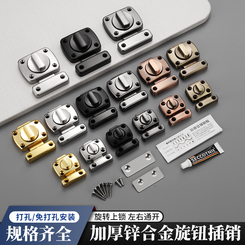 穴なし回転ラッチ明装ラッチ左右ロック亜鉛合金盗難防止バックル黒明装ミニドア栓