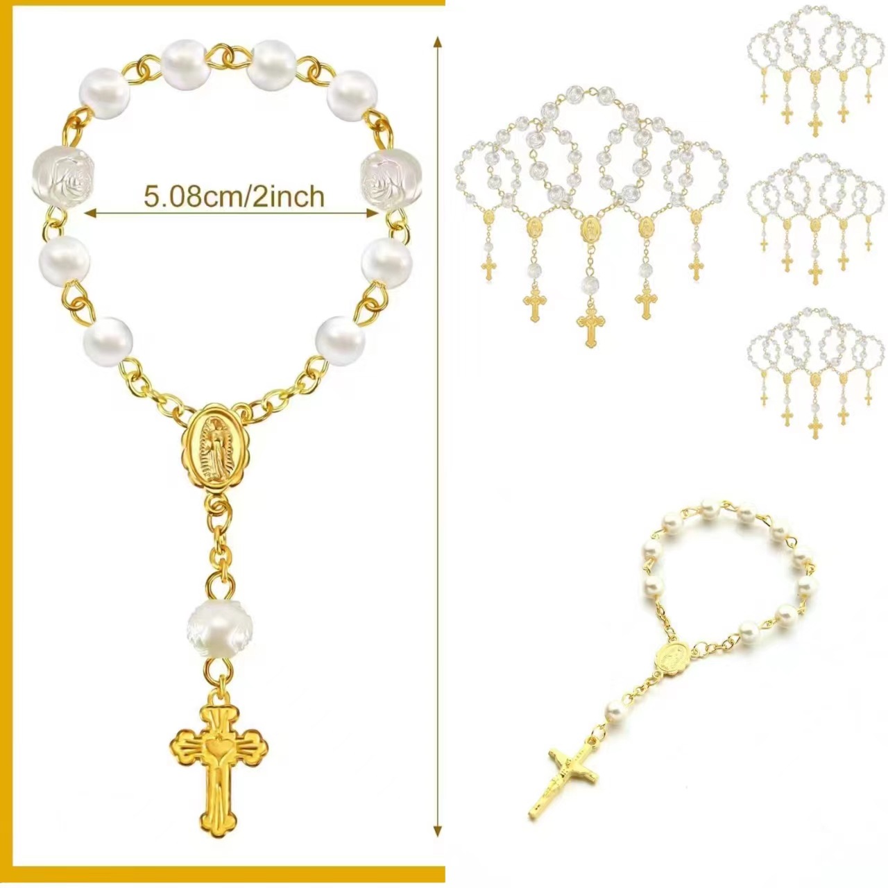 クロスボーダーアマゾン热い贩売赤ちゃんの洗礼ローズの花数珠圣餐プレゼント结婚式お返し指チェーンRosary