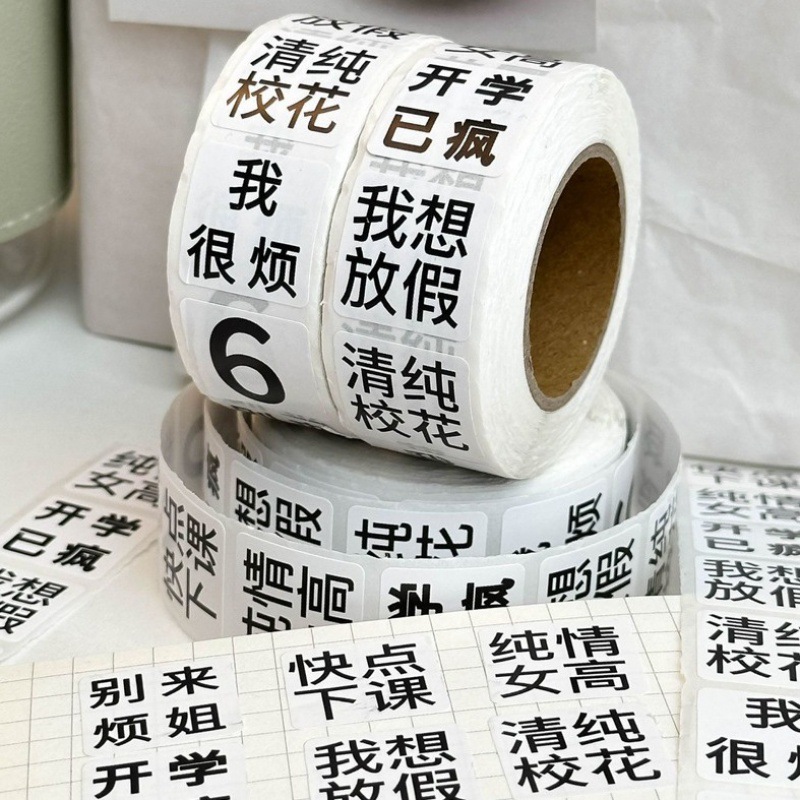 5OO マッドリテラリーロールステッカー、高見えするネットセレブテキスト、シンプルなシールステッカー、ハンドブックステッカー、学生の必需品