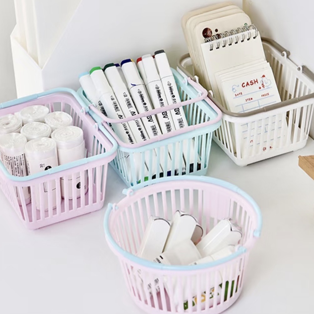 かわいいマカロン色の手提げ収納バスケットピンク少女心シール文房具雑物アクセサリーデスクトップ収納バスケット