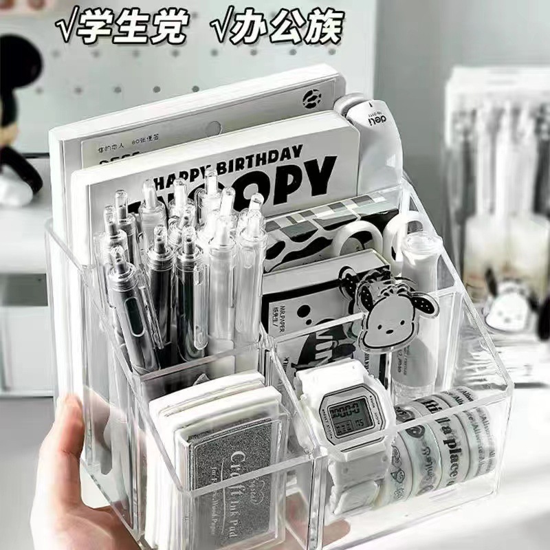 Ins無印風シンプルアクリル透明筆筒学生オフィスデスク創意ファッション収納文房具筆箱