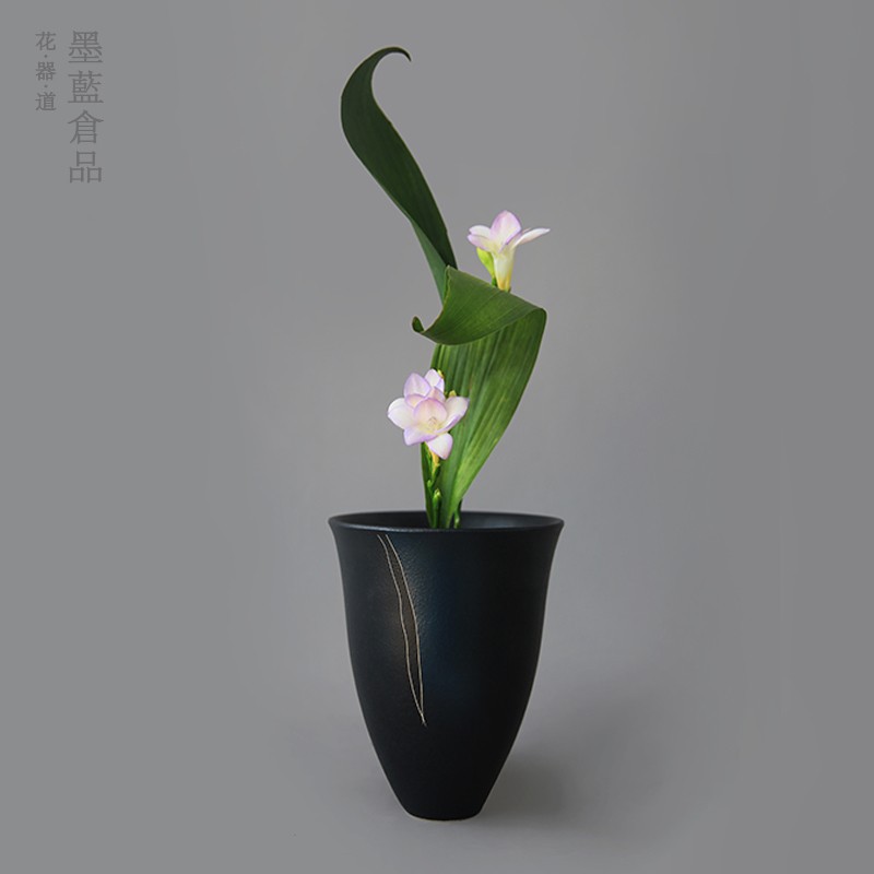墨黒陶磁器植木鉢花器剣山生け花器禅意レトロ中国式生け花器日本式花道小原流