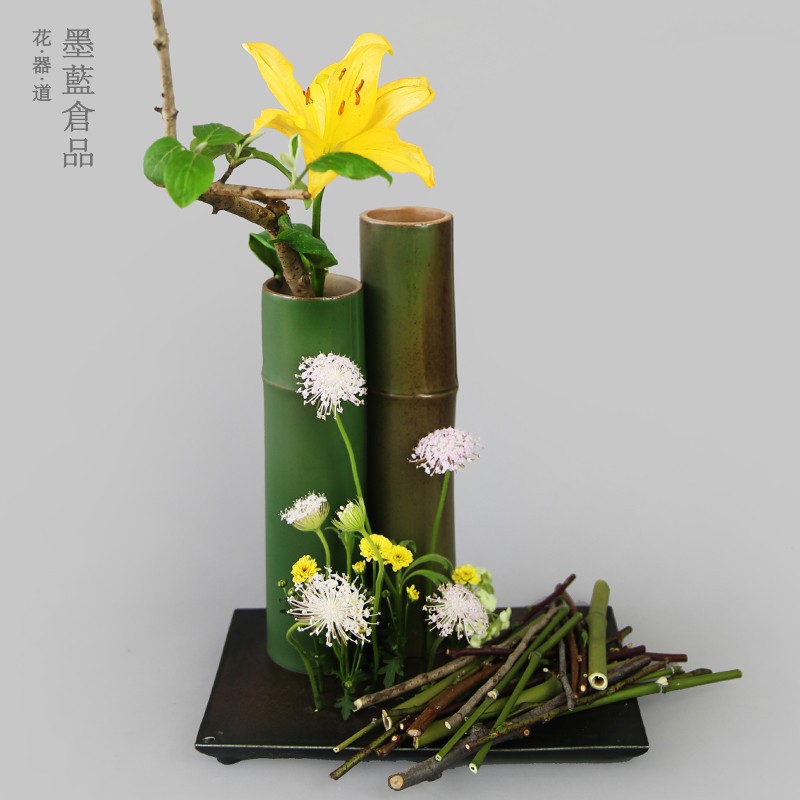 池坊花器生け花器日本式花道禅意軽豪華陶磁器創意ドライフラワー花瓶置物
