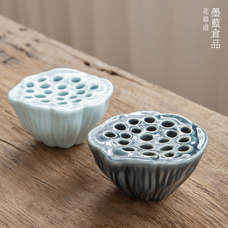 陶磁器蓮蓬巣花器禅意中国式日本式生け花器中国風茶席テーブルの小さい花皿の置物
