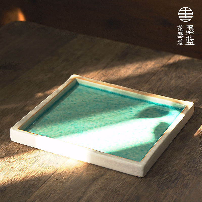 水養ブラジルの木の四角形の陶磁器の浅い皿のシンプルな室内のベランダの客間の茶室の民宿のデスクトップの装飾の台