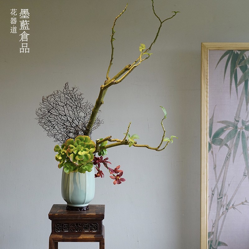 レトロ陶磁器高足小花器禅意中国式日本式生け花器茶席テーブル置物剣山生け花器