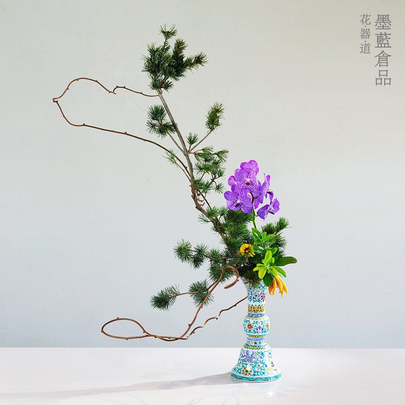 墨藍花器合金台座加重剣山プラスチック生け花器中国式日本式生け花固定工具神器