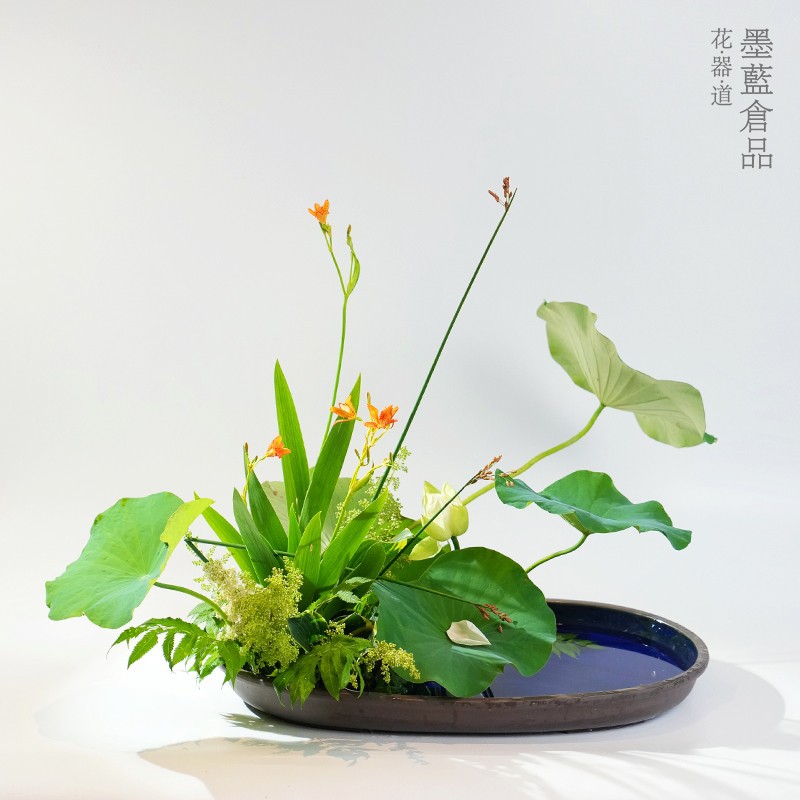 日本式楕円生け花器小原流琳派烏尼盤写景盛花特大プラス鉢植え植木鉢