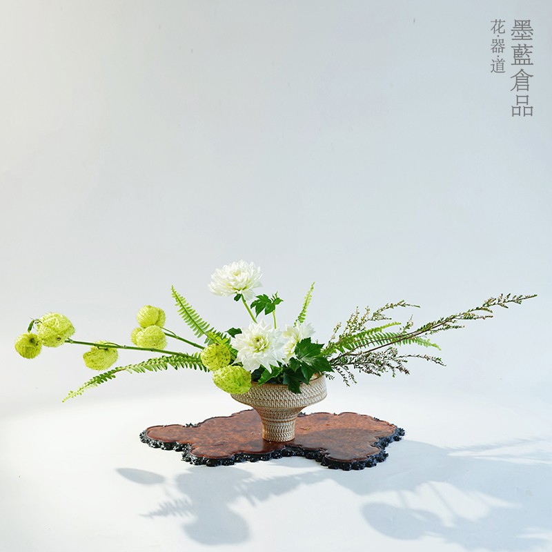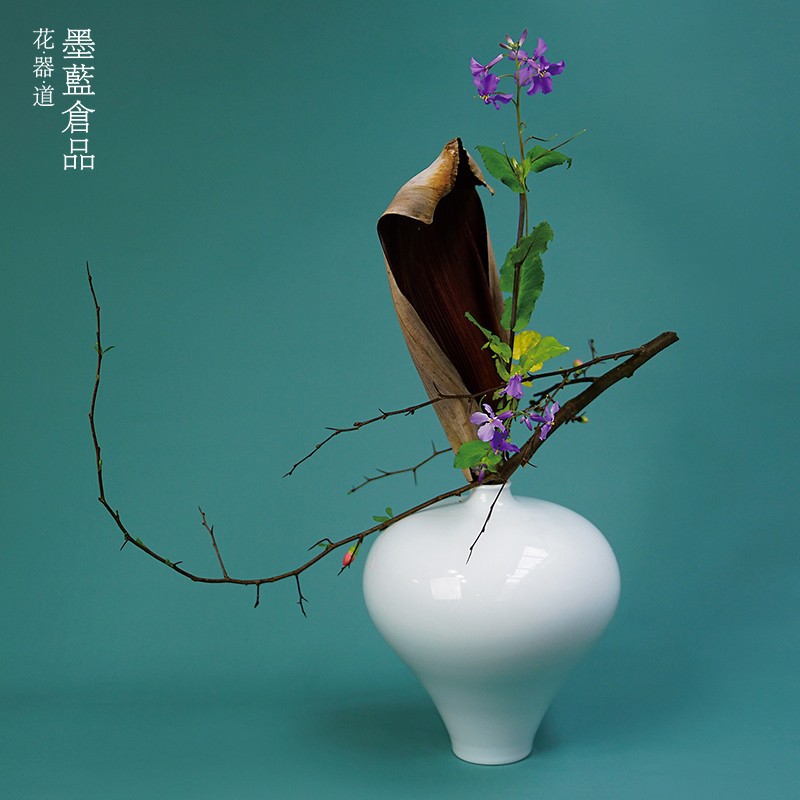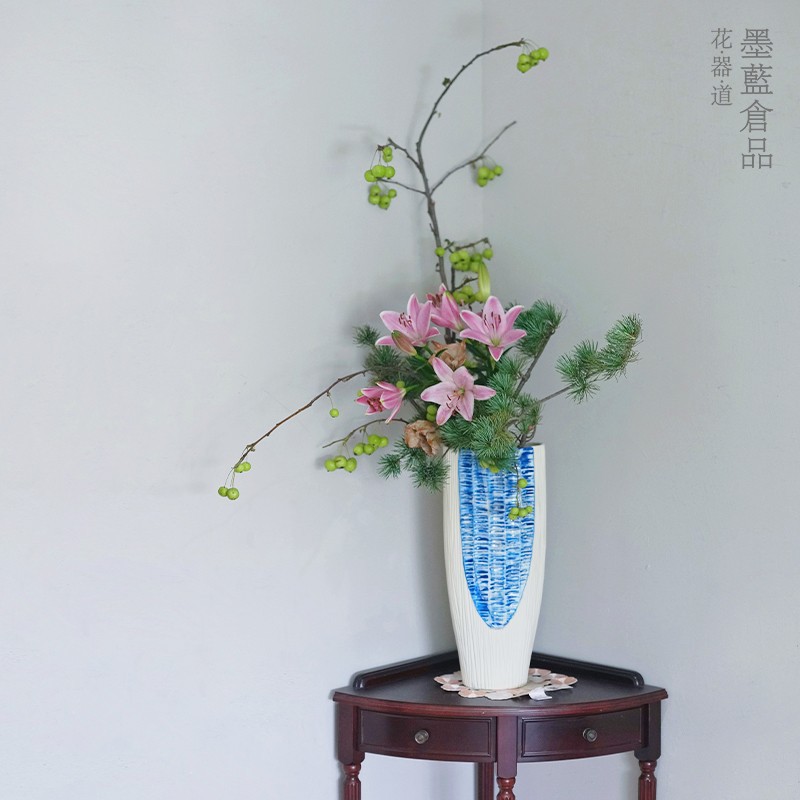 墨藍花器デザイナーの景徳鎮白磁器中国式日本式生け花器高足花瓶リビング置物