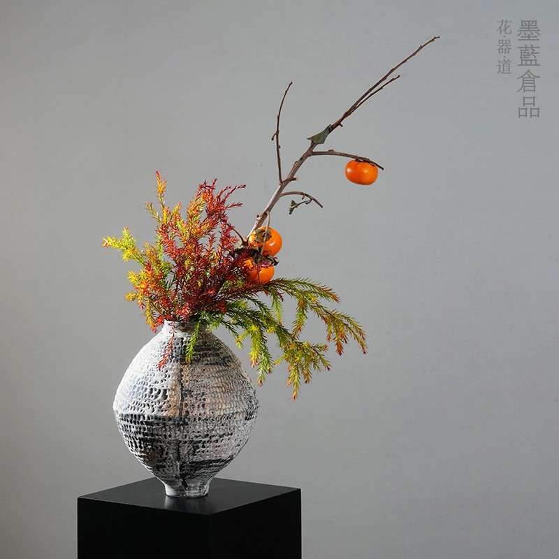 墨藍花器製陶磁器花瓶禅意中国式日本式生け花器白磁器テーブル置物投入花瓶