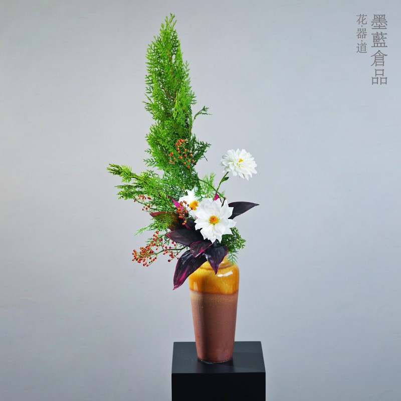 日本式池坊風陶磁器花器大生花立花デスクトップ生花生け花器シンプルなリブ色合わせ