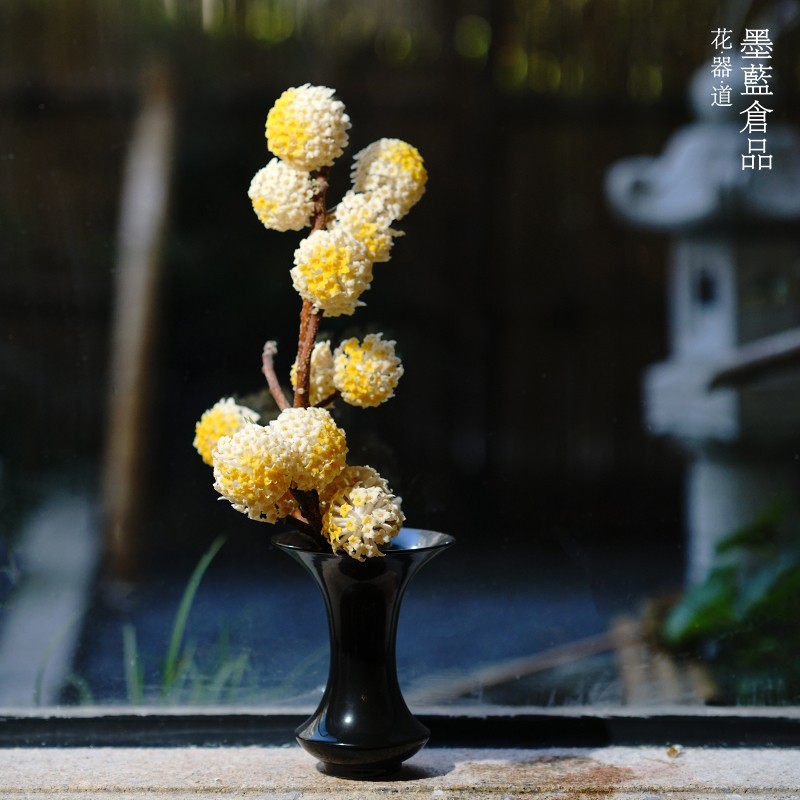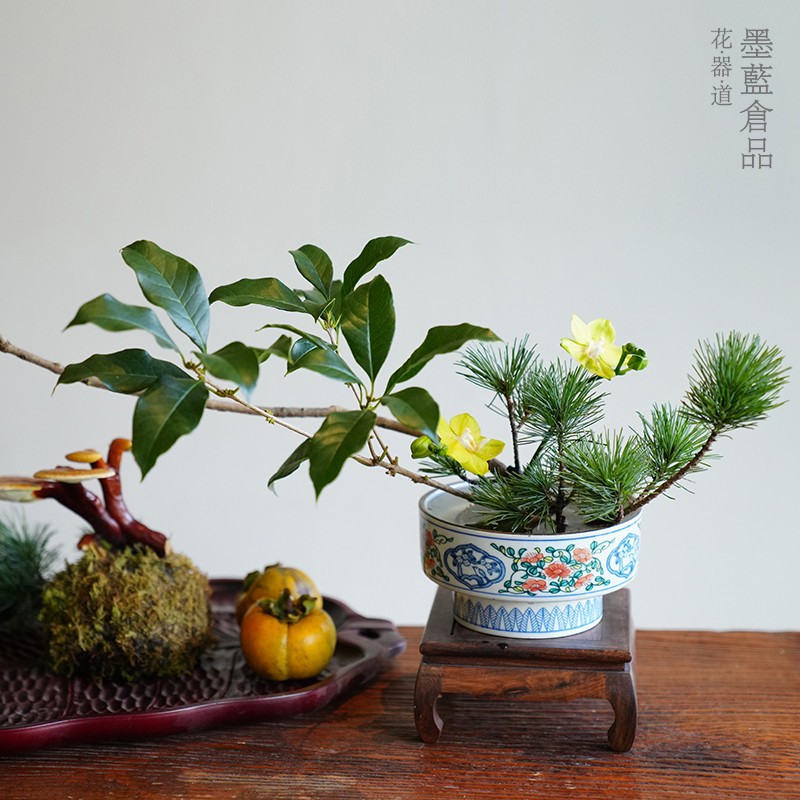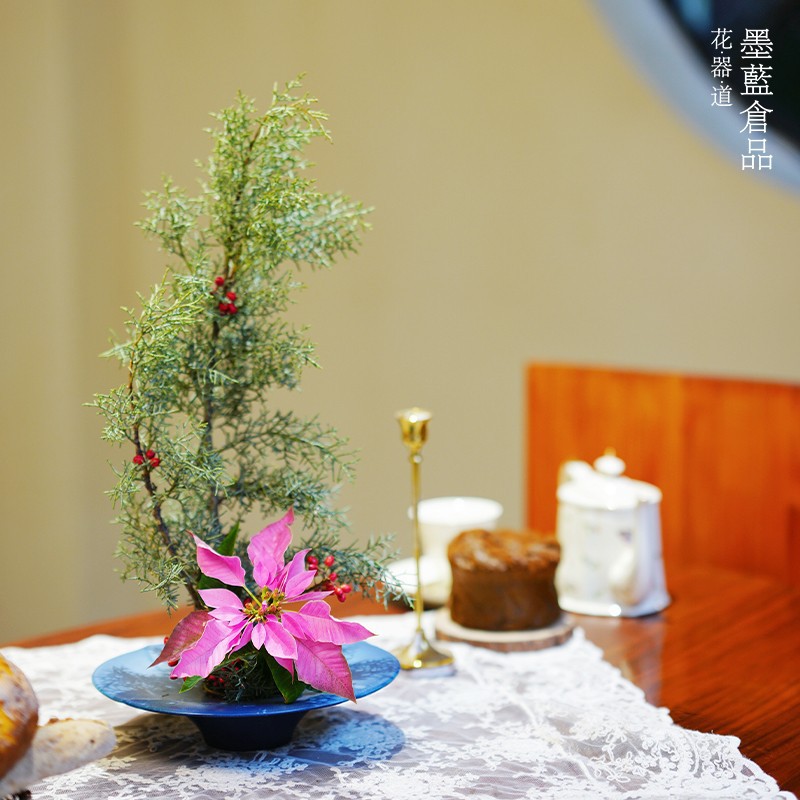池坊立花花瓶墨藍花器花道生け花陶磁器手作り器現代中国式装飾置物