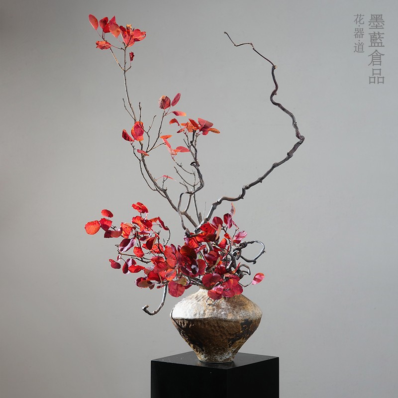 景徳鎮の陶磁器の粗い陶器の花瓶の生け花の缶の日本式の復古は古い装飾をします。