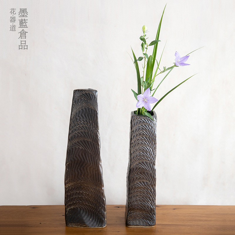 正方形の陶器製和風花瓶、禅の雰囲気のあるリビングの飾り、小原流生け花用花瓶、卸売