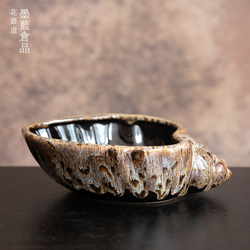 陶磁流釉薬海螺花器中国式生け花器日本式花道剣山生け花器創意デスクトップ置物