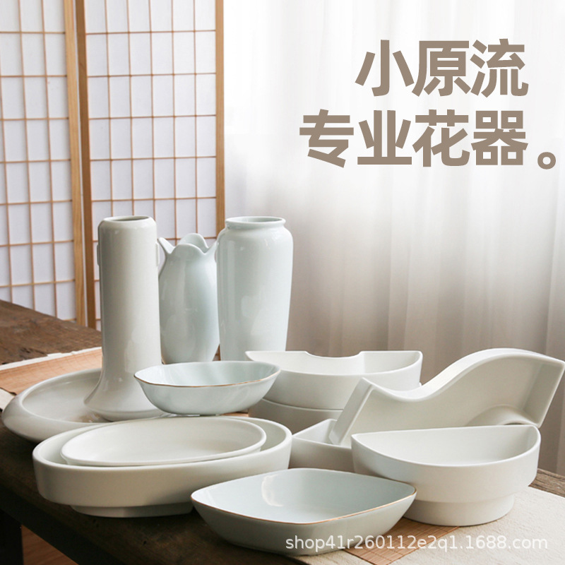 景徳鎮の陶磁器の模造の花瓶の装飾品の花器の禅意の日本式の生け花の器の小原の流れは瓶を投入します。