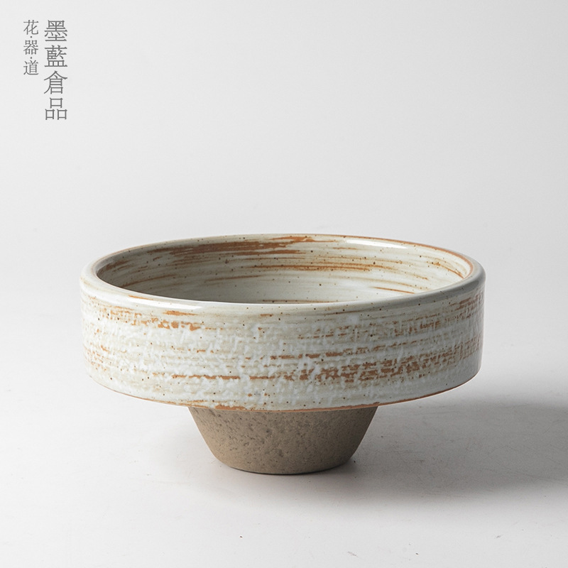 不規則な手作り円形高足碗小原流花器陶磁器禅意中国式日本式生け花器置物