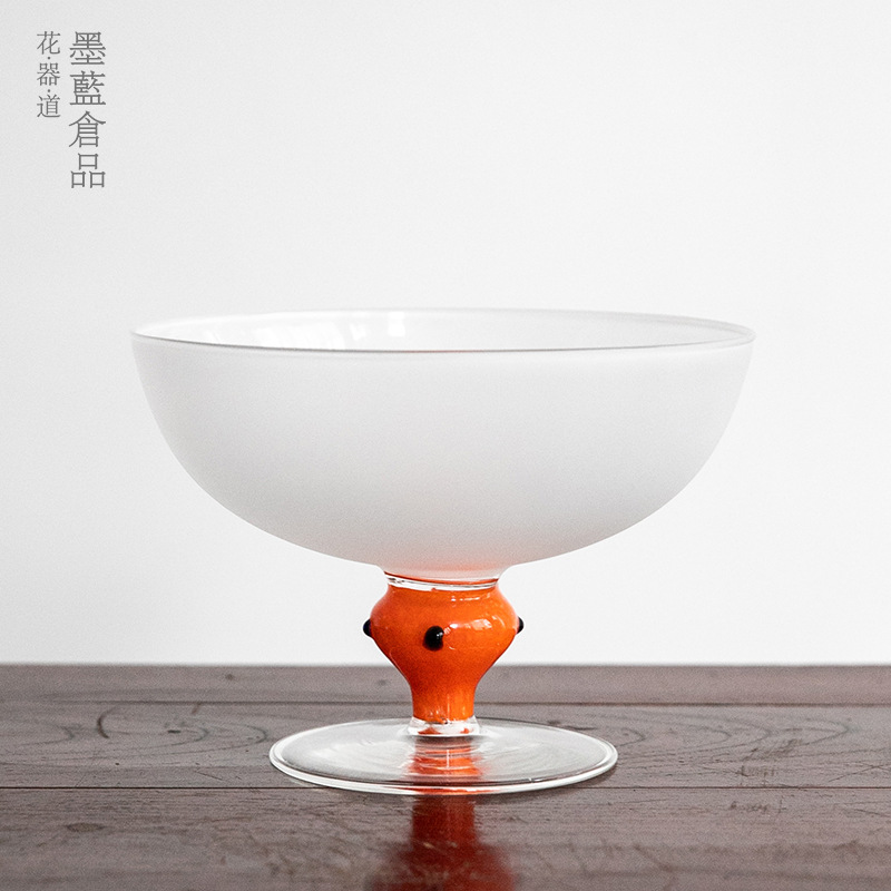 すりガラス透明果盤花器日本式花道生け花器花盤高足小原流盛花花器