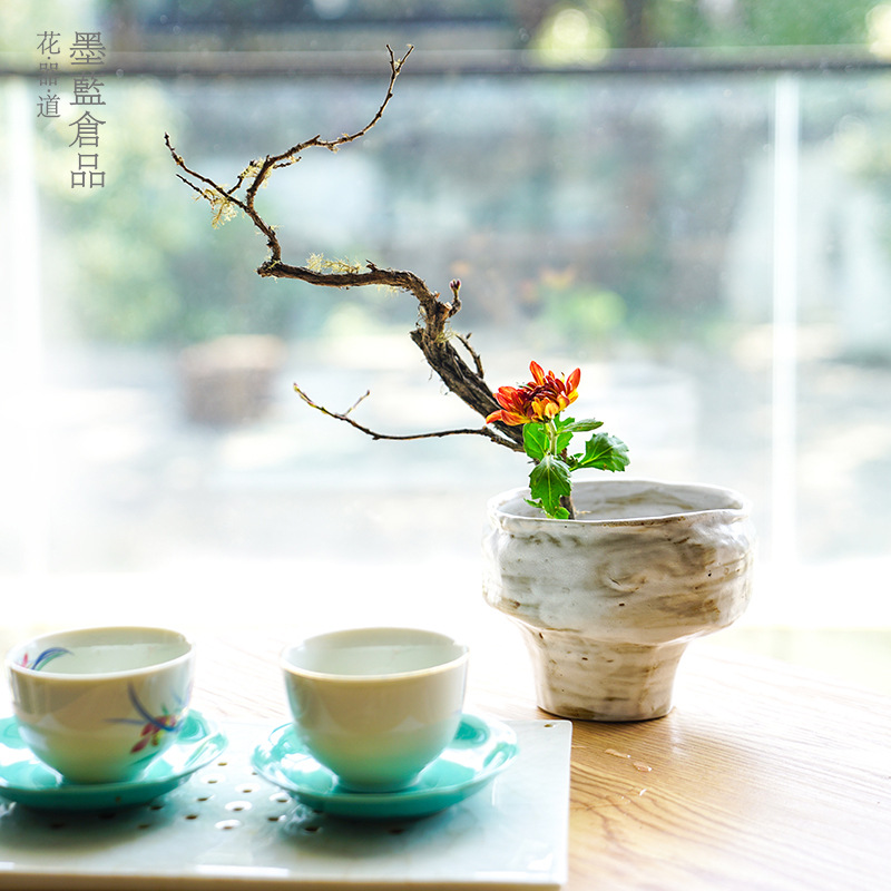 メーカー直売日本式生け花池坊花器禅意陶磁器の艶消し植木鉢シンプル創意大花盤花瓶