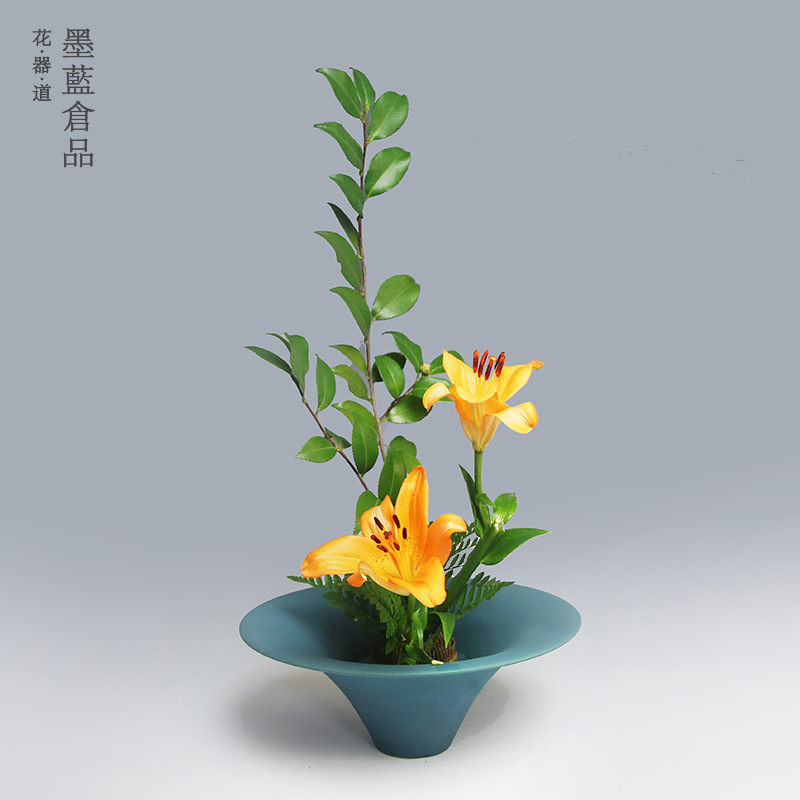 墨藍花器道池坊標準生花立花生け花花器禅意日本式生け花器高足花盤