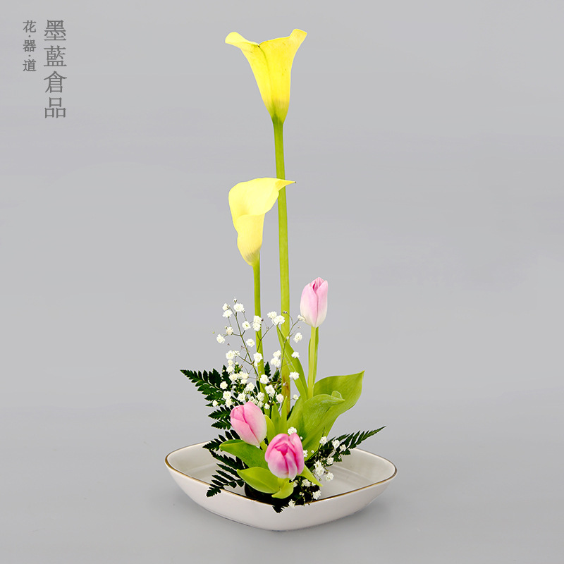日本小原流天使ひし形生け花器禅意陶磁器生け花器日本式花道創意花盤