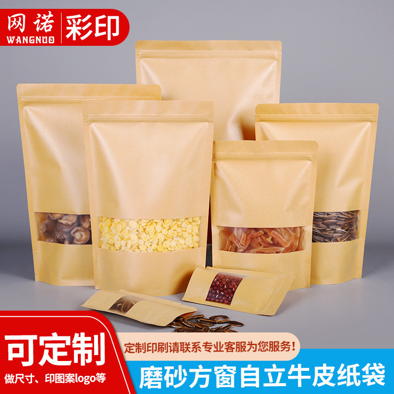 クラフト紙袋フロスト開窓紙袋ドライフルーツ食品包装袋クラフト紙自立自封袋茶葉袋