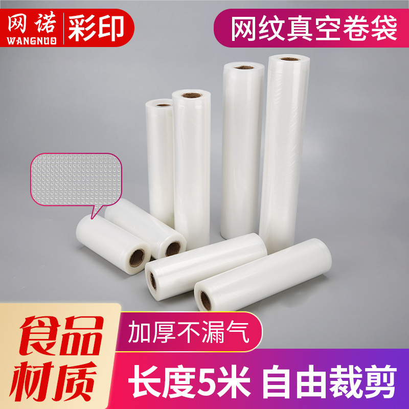 網諾紋路真空袋食品包装袋家庭用真空引き調理食品保存袋5m巻き筒密封ビニール袋