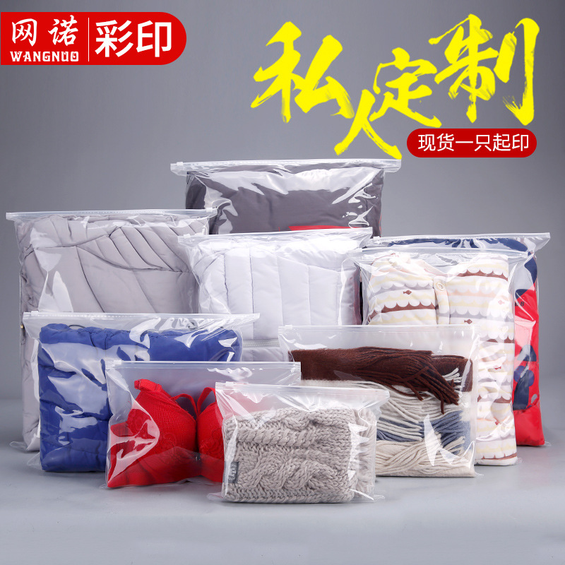 網諾ブランドのフロストファスナー袋の下着の包装袋の透明な一面のフロストの服装袋のlogo