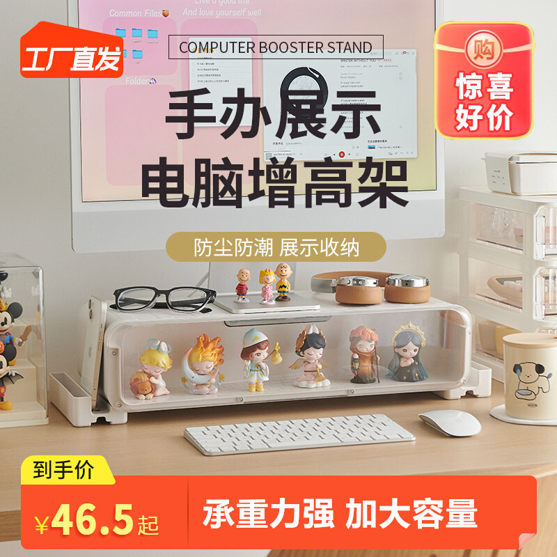 パソコンのディスプレイが高くなって、棚の神器事務室のデスクトップのデスクトップの引き出しのブラインドの箱を持って改造して置物を収納します。