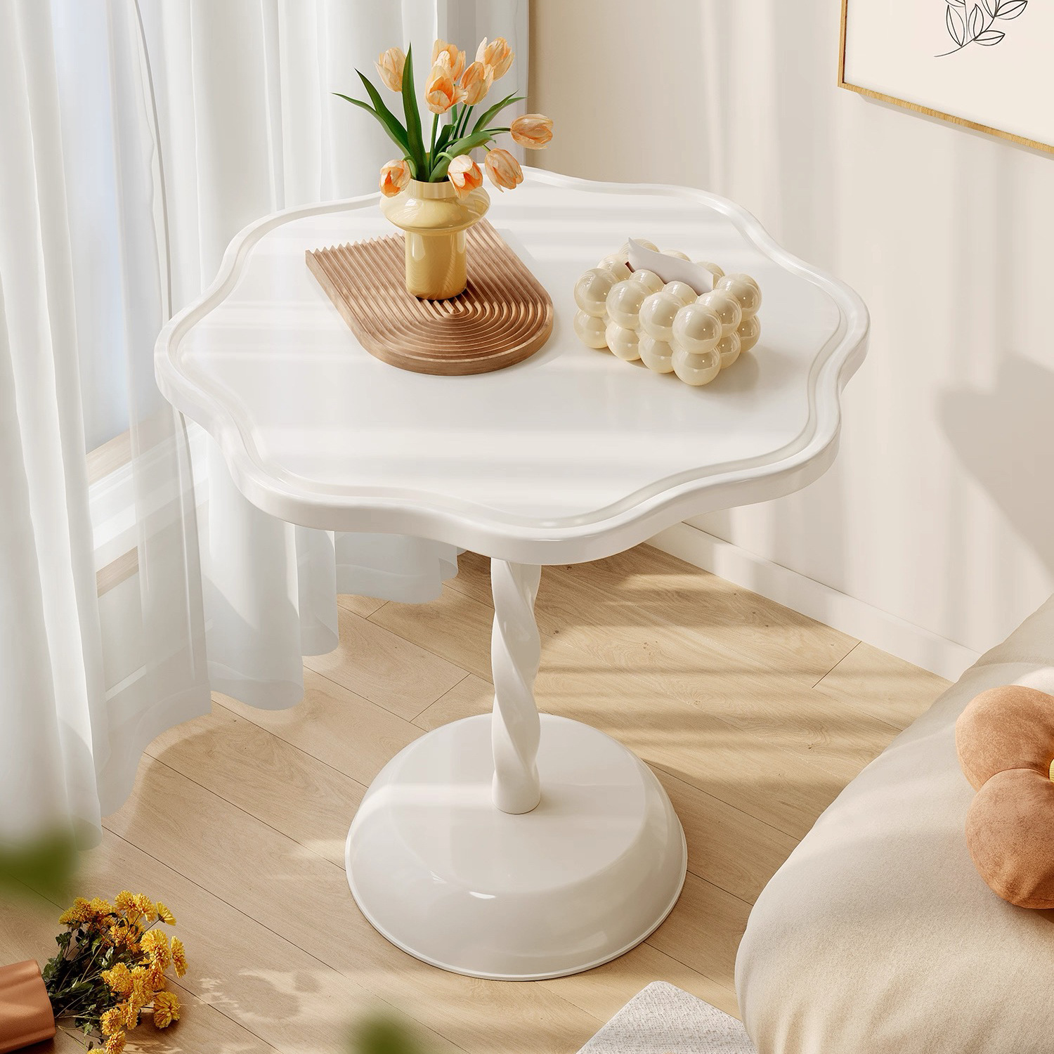 クリームサイドテーブル可動小さなテーブルシンプルな家庭用インライト高級小さなコーヒーテーブル寝室アイアンベッドサイドテーブル収納