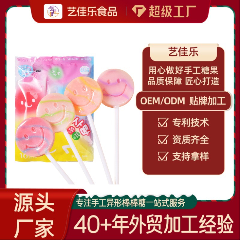 カスタマイズされた子供の日のキャンディー、スマイリーフェイスのロリポップ、フルーティーな見た目のキャンディー、子供の日のスナック