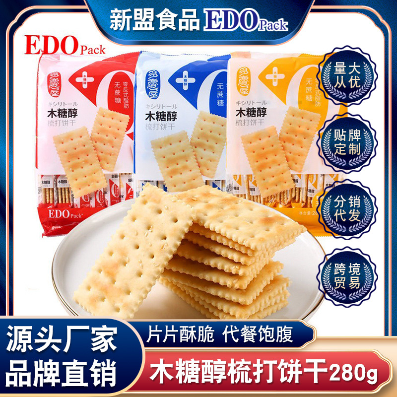 Edopackキシリトール櫛打ちビスケット280g海塩味無ショ糖ソーダ餅レジャー事務スナック