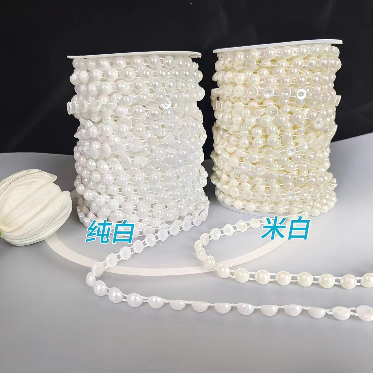 6-8mm半面チェーンビーズ模造真珠純白服装アクセサリーレースdiy工芸部品ヘアアクセサリー材料