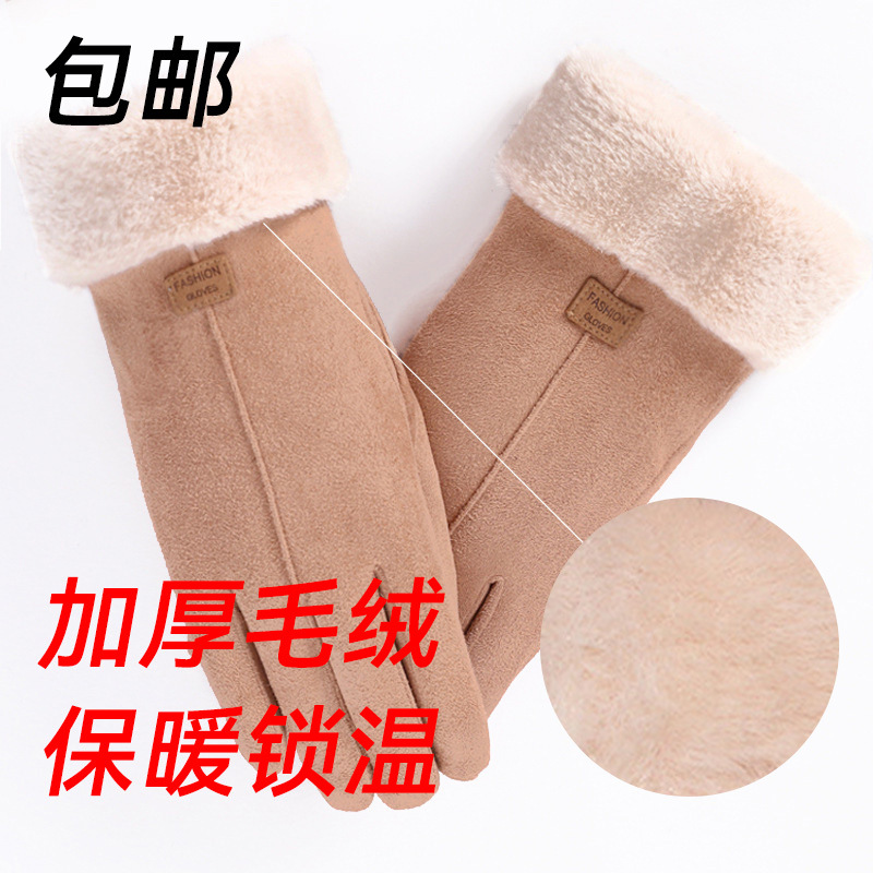 毛口北極ベルベット厚手保温スエード手袋 レディース 防風 タッチスクリーン対応 サイクリング 自転車 乗馬 工場直販