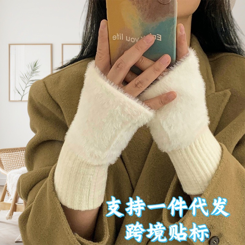秋冬暖かい防寒手袋女性イン韓国語版多用途ぬいぐるみ気質かわいいオフィスハーフフィンガー学生手袋
