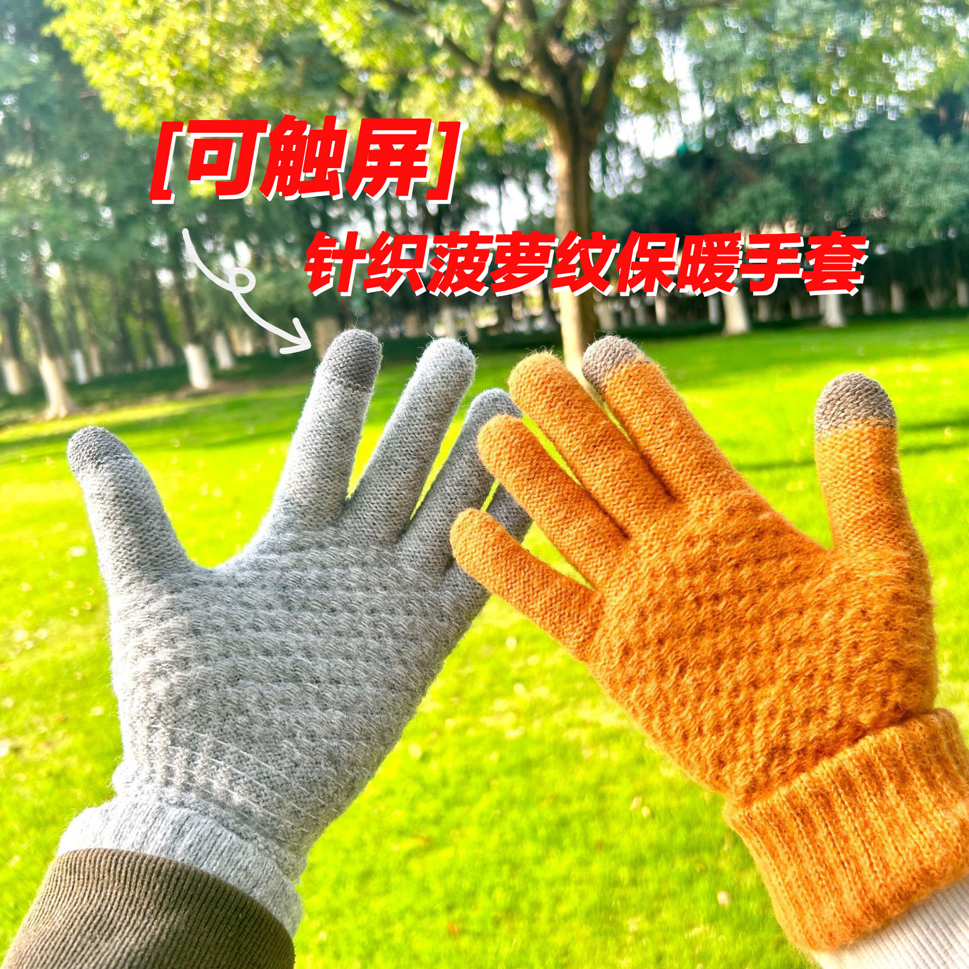 パイナップルの紋様の手袋とベルベットの厚い韓国版の防寒かわいい騎乗はタッチパネルの保温の毛糸のニットの手袋の卸売りに触れることができます。