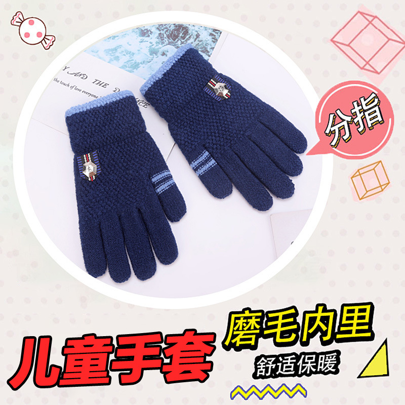 子供用手袋冬保温韓国版笑顔毛糸五本指男女学生赤ちゃん防寒指ニット手袋