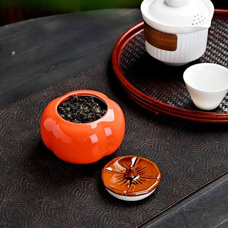 柿柿如意陶磁器茶葉柿缶トランペット糖果箱密封缶プーアル赤緑茶父誕生日プレゼント