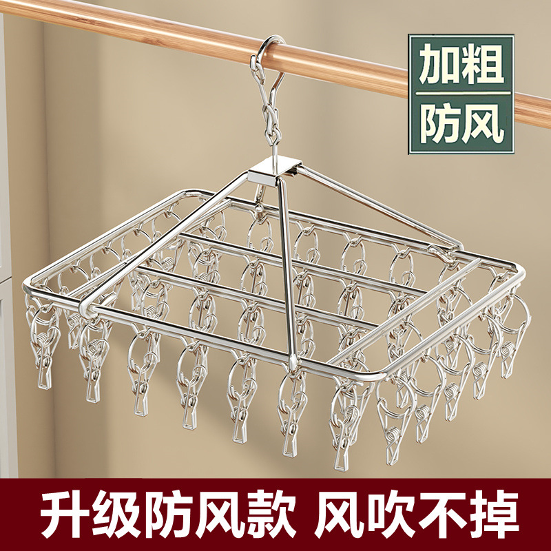 【防風設計】ステンレスハンガー多クリップハンガーのクリップタイプ寮で靴下の神器を干して靴下を干します。