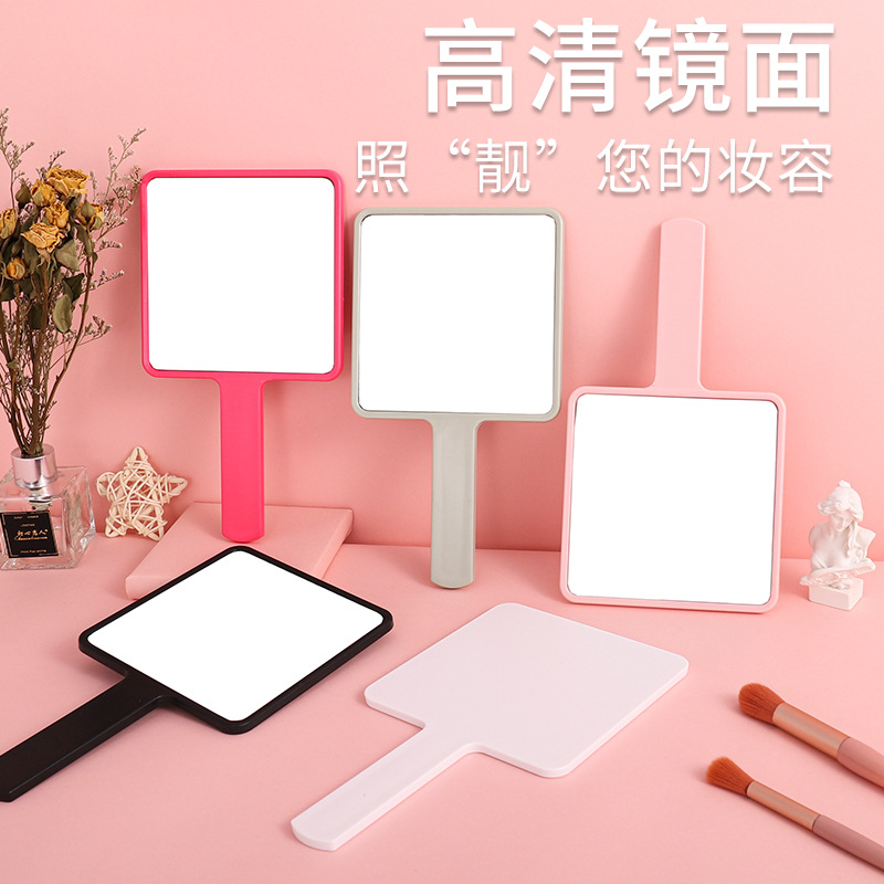 手持ち式四角鏡、クリエイティブな四角形化粧鏡、DIYポータブル高画質ハンドル付き鏡、ロゴ製作、卸売、鏡のカスタマイズ