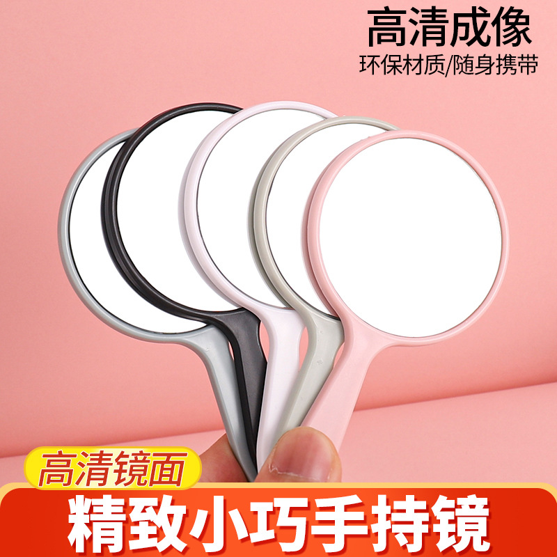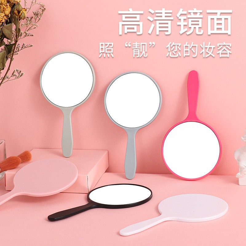 円形の鏡のミニは化粧鏡を持っています。可愛い携帯ハンドルの鏡はロゴのプラスチックの小さい鏡を印刷できます。